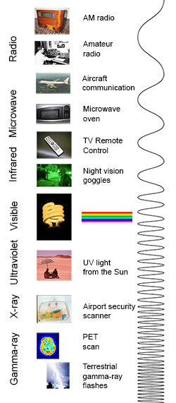 - [The electromagnetic spectrum from lowest energy/longest wavelength (at the top) to highest energy/shortest wavelength (at the bottom). (Credit: NASA's Imagine the Universe)]
